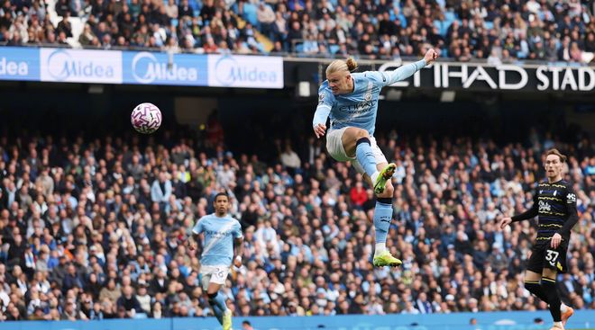 曼城在赛季初遭遇两连败后,上赛季未尝一败。依靠哈兰德的持续进球表现,蓝月亮国内外传出好消息,在英超积分榜上仅落后阿森纳3分。英超第8轮比赛于周末正式开打。埃弗顿在阿提哈德球场迎战曼城。哈兰德5分钟梅开二度,帮助曼城主场2:0全取三分。埃弗顿上赛季在莫耶斯第二次入主皇宫后避免了降级。新赛季,他们在引援后重回正轨。上轮他们终结了水晶宫整个赛季19场不败的纪录。本场比赛,哈兰德、多库、福登、萨维尼奥四位主攻首次联袂登场;雷德尔斯和尼科·冈萨雷斯是双中场;努涅斯、迪亚斯、阿克、奥莱利组成后防线,多纳鲁马镇守目标。莫耶斯近年来曾带领曼联、西汉姆联和埃弗顿在伊蒂哈德球场惨败。苏格兰老将本场比赛部署重兵防守;让曼城上半场踢得有些尴尬。第11分钟,奥莱利外围一脚选择落地,皮球偏出底线;第14分钟,曼城差点丢球,恩迪亚耶门前滑倒,却是贝托解围将球踢出;第24分钟,曼城获得角球,奥布莱恩头球击中横梁,险些自摆乌龙。第40分钟,恩迪亚耶突破福登和奥莱利的防守后大力抽射。多纳鲁马及时停在近角并做出精彩扑救;第42分钟,哈兰德前场积极反击,随后将球分出。雷德斯将球传给多库,但后者的推射被皮克福德扑出。第45分钟,萨维尼奥右路继续解开防守射门,但皮克福德依然被挡出。未能进球,是哈兰德挺身而出;第58分钟,福登左路突破埃弗顿防线,奥莱利快速跟进向前传中,禁区里的哈兰德在门前拉起大葱,大力头球将球入网,1:0!这是哈兰德本赛季第10粒英超进球。这是英超历史上第三次有球员在本赛季前八场比赛中得分上双,而这三次都是由哈兰德完成的。第63分钟,福登长传,萨维尼奥禁区左侧倒三角停球后回敲。哈兰德大力射门,皮球穿过塔尔科夫斯基胯部击中远角,2:0!哈兰德5分钟梅开二度;同时,他连续11场为俱乐部和国家队比赛进球。团队。此外,哈兰德在105场英超联赛中打进96球,超越范尼斯特鲁伊,在英超历史射手榜上升至第37位。排在他前面的是打进98球的阿德巴约。手握2粒进球,下周还有一场欧冠比赛,瓜迪奥拉再次使用熟悉的控球技巧来消磨时间,同时让科瓦契奇、舍尔基等人伤愈复出找到比赛感觉。最终,曼城将比分2:0保持到比赛结束。目前他们各项赛事8场比赛保持不败;这些都与立场相关。
